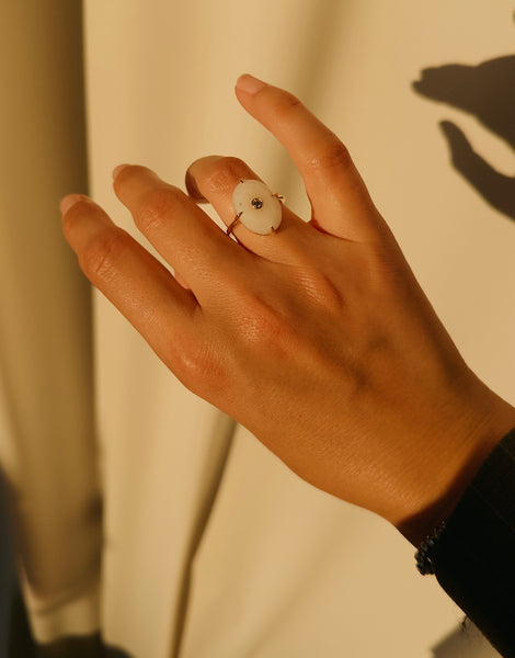 A diamond within a moonstone. Light within light. A reminder that even in softness, there's power.